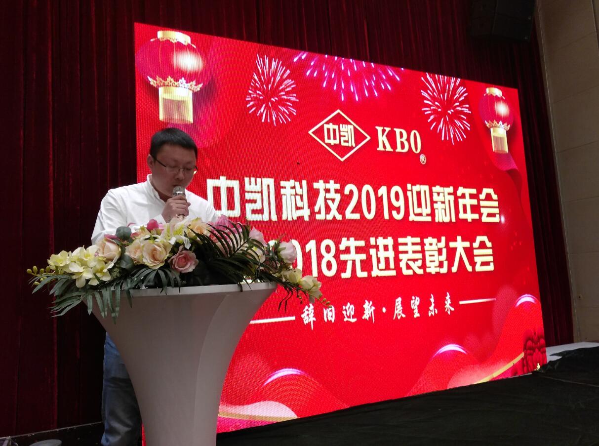 戌年景象升平開泰運,亥歲生意興隆賀華章。1229日,中凱科技2019迎新年會暨2018先進表彰大會隆重舉行。參加年會的公司領導有董事長、總經理屠瑜權,常務副總經理屠旭慰,監事會主席吳邦林,財務總監、董事會秘書朱輝才,市場技術總監李華民,生產總監劉禮,副總工程師周義忠,技術中心常務副經理黃世澤。高級顧問、特邀嘉賓和來自公司本部各部門的研發、生產、經營、管理人員,上海研發部,市場部全國各大片區銷售總監、各省區經理、業務精英等共150余人參加年會。