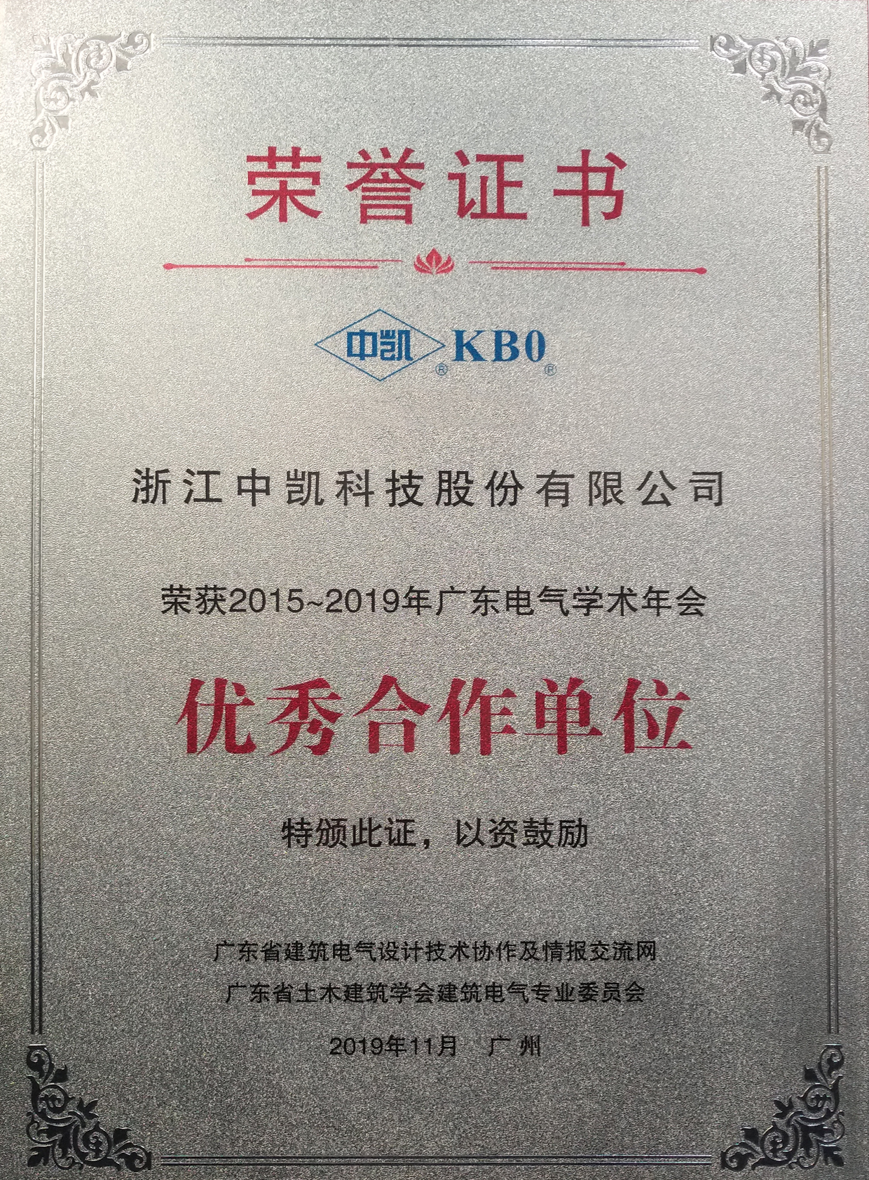 日前,在2019年廣東建筑電氣與智能建筑年會暨學術(shù)交流會上,浙江中凱科技股份有限公司榮獲2015-2019年優(yōu)秀合作單位。