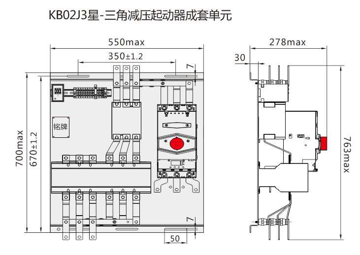 適用于電動機星-三角減壓起動的控制與保護,以KB02產品作為主開關,與塑殼斷路器、可逆接觸器、時間繼電器、電氣聯鎖及控制回路組合構成-三角減壓起動的控制與保護裝置。