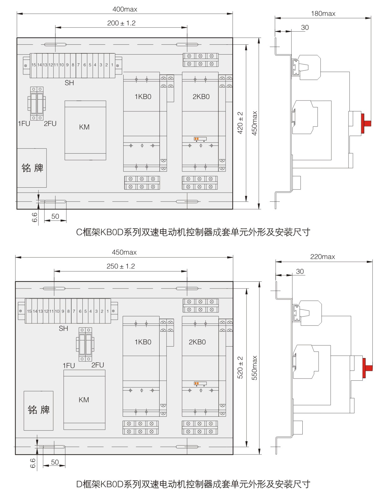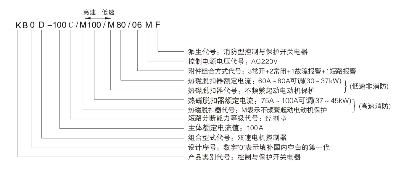 以KB0作為主開關,與接觸器、電氣聯鎖等附件組合,構成雙速電動機控制器KB0D,適用于雙速電動機的控制與保護。雙速電動機控制器配置有三種: