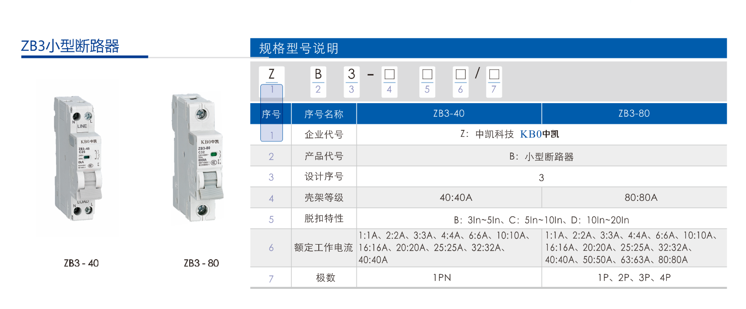 ZB3小型斷路器具有觸頭位置指示窗口,帶觸指防護(hù)組合型接線端子及紅綠安全指示,安全性更高。限流型觸頭系統(tǒng),磁吹型滅弧裝置,確保高分?jǐn)嗄芰Γ苊猱a(chǎn)品與設(shè)備承受大的短路電流。殼體與功能鍵均采用高性能PA尼龍(高阻燃、耐高溫、耐沖擊)塑料制成。外形新穎、結(jié)構(gòu)合理,具有多項(xiàng)專利保護(hù)。產(chǎn)品具有過(guò)載、短路保護(hù)功能。